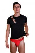 Roter Mini-String für Männer von LOOK ME. Für das Material wurde eine dehnbarer blickdichter Baumwoll-Stoff verwendet. Der Artikel wird auf Bügel in Klarsichtfolie geliefert. • Pflegehinweis: ...
